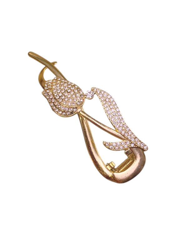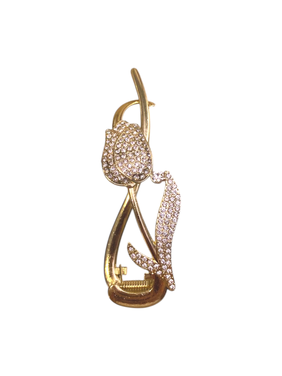 طراحی ظریف و هنرمندانهی گل لاله با نگینهای اتمی درخشان، بر روی بدنهای فلزی با رنگ طلایی ثابت و مقاوم، حس یک تکه جواهر روی مو رو منتقل میکنه – بدون اینکه لازم باشه براش قیمت طلا رو بپردازی.