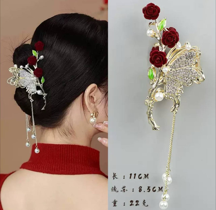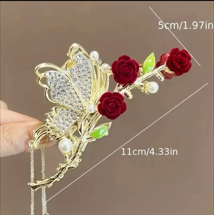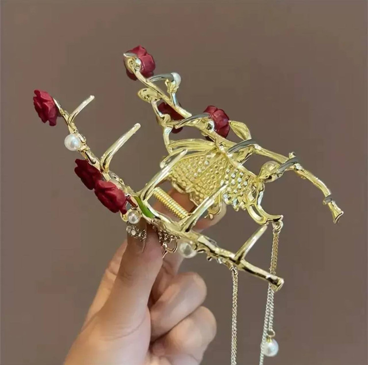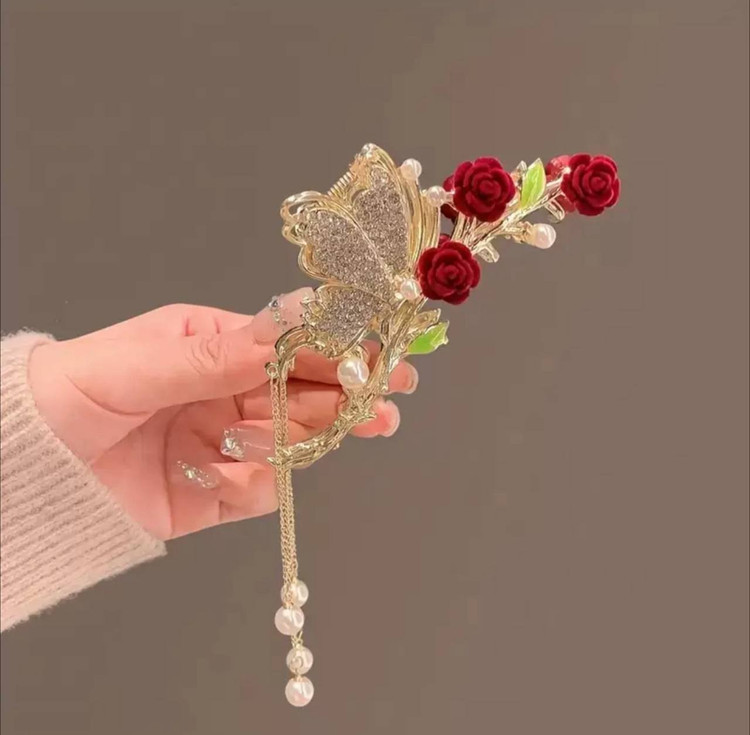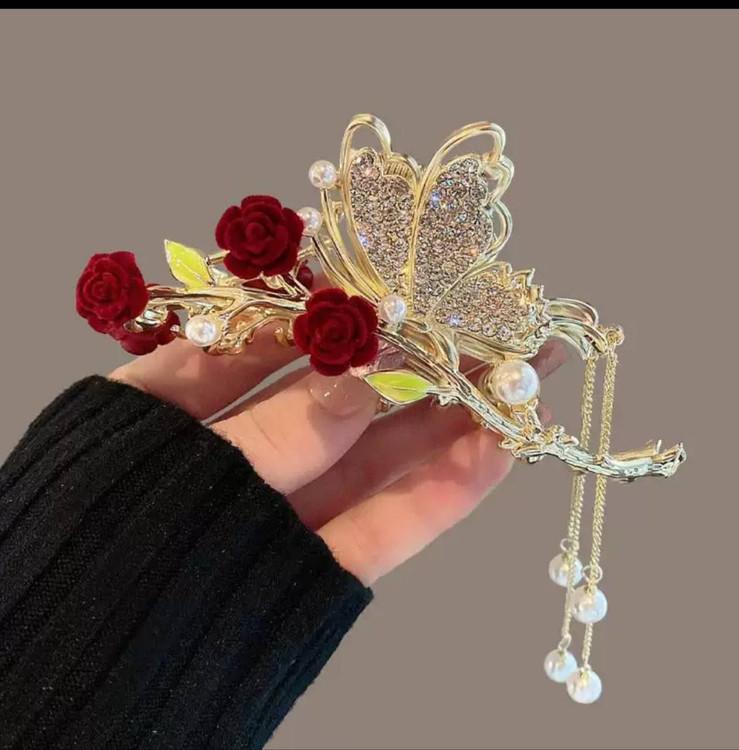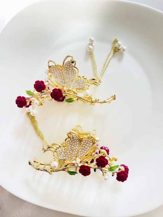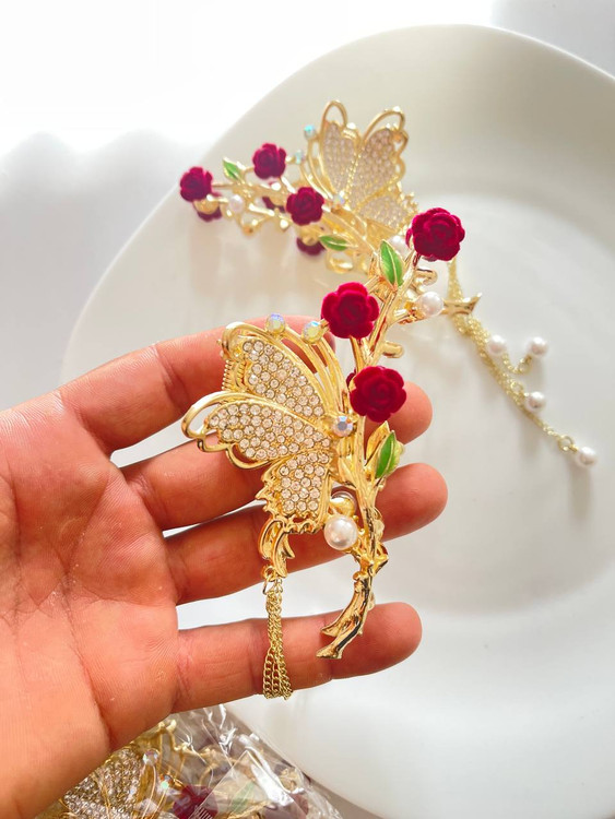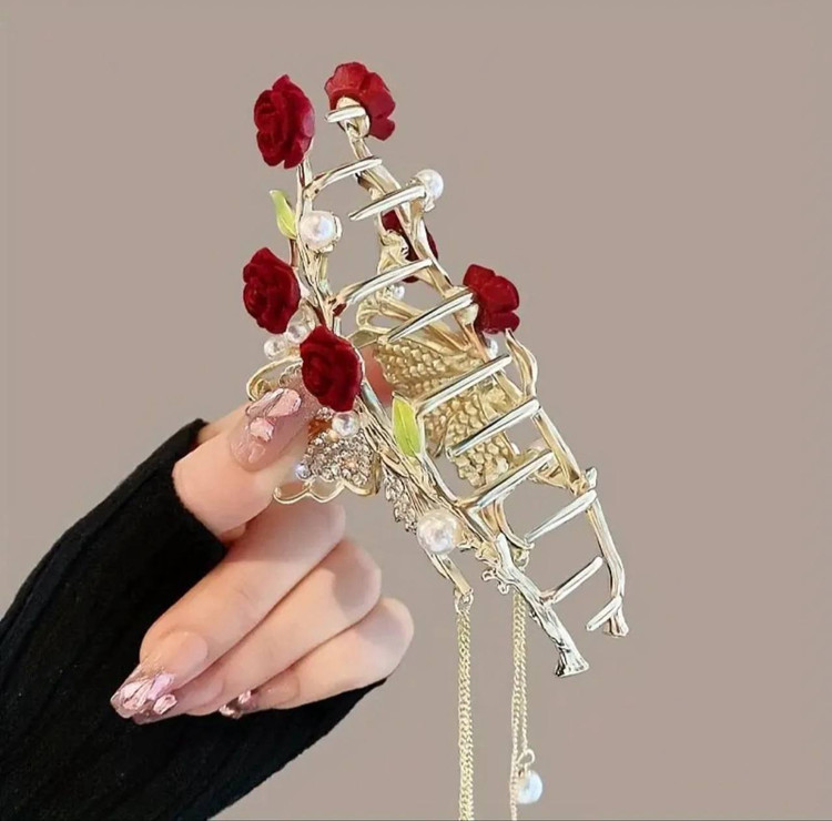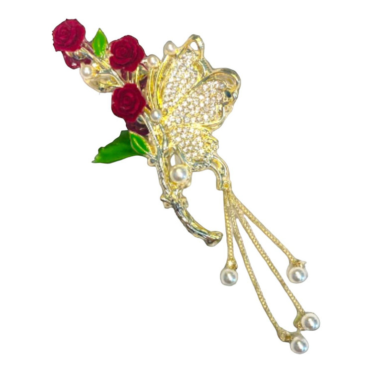-رنگ:پایه طلایی، رز قرمز، برگ سبز، نگین و مروارید سفید