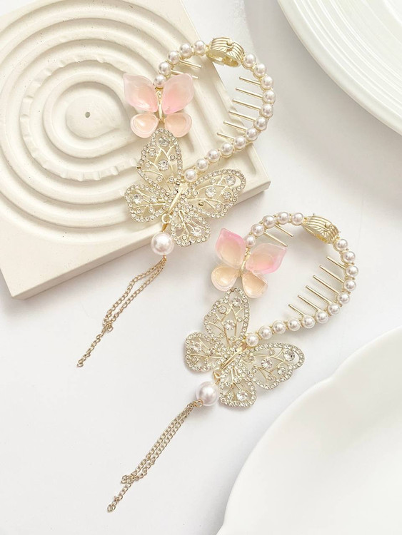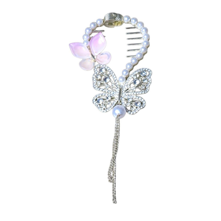 طراحی این کانزاشی ترکیبی از گلهای فلزی ظریف، نگینهای درخشان، مرواریدهای کلاسیک و یک پروانه صدفی صورتیه که جلوهای لطیف و رمانتیک بهش داده. اما چیزی که این مدل رو از نمونههای معمول بازار جدا میکنه، فقط زیبایی نیست — کیفیت ساخت حرفهای و دوام بالاشه.