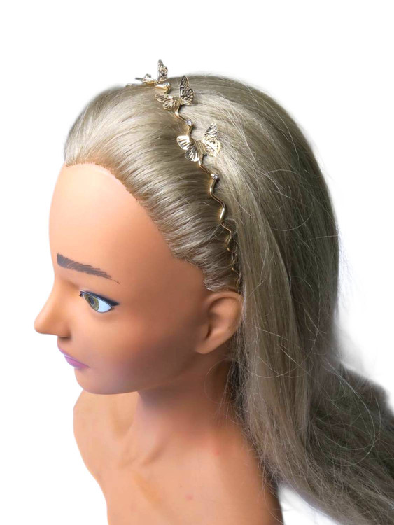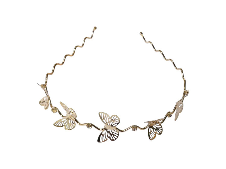 این تل سر مینیمال طلایی پروانهای یه انتخاب خوشگل و خاصه برای وقتایی که میخوای بدون شلوغکاری، استایلت یه درخشش ظریف داشته باشه. فرم موجدار فلزیش خیلی قشنگ روی سر میشینه و اون پروانههای کوچولوی براق، یه حس لطیف و دخترونه به موهات میدن ✨