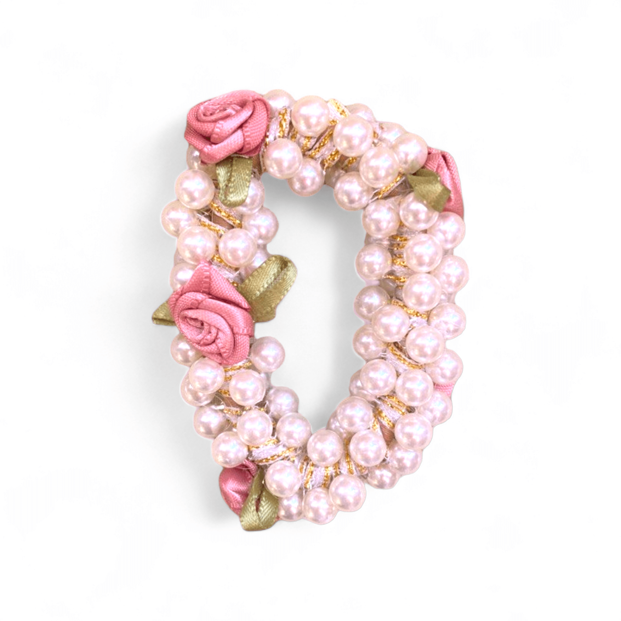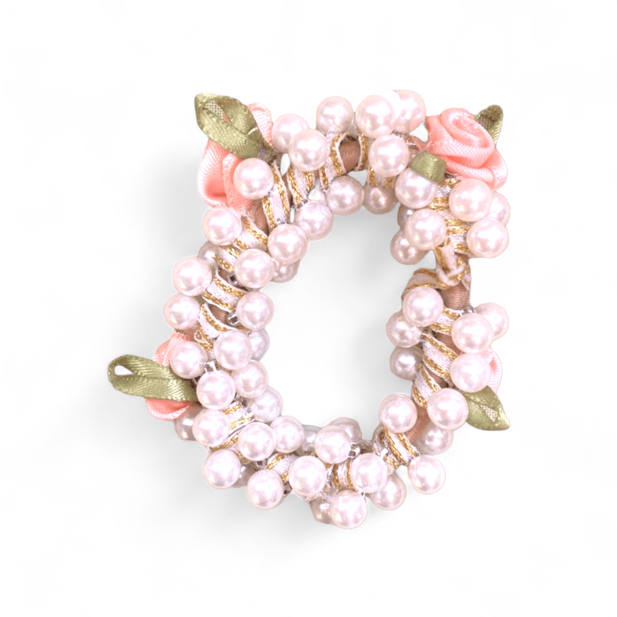 کش بافت مرواریدی با گلها و برگهای روبانی