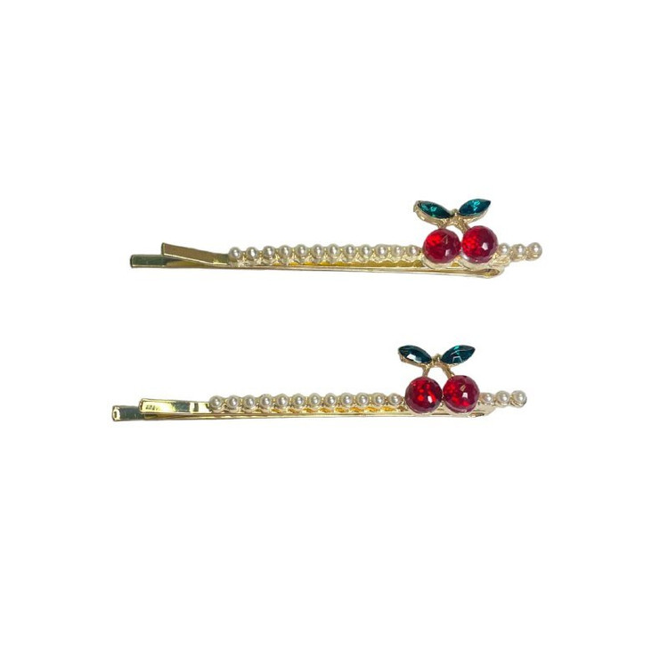سنجاق انبری آلبالو فلزی با کریستال و مروارید