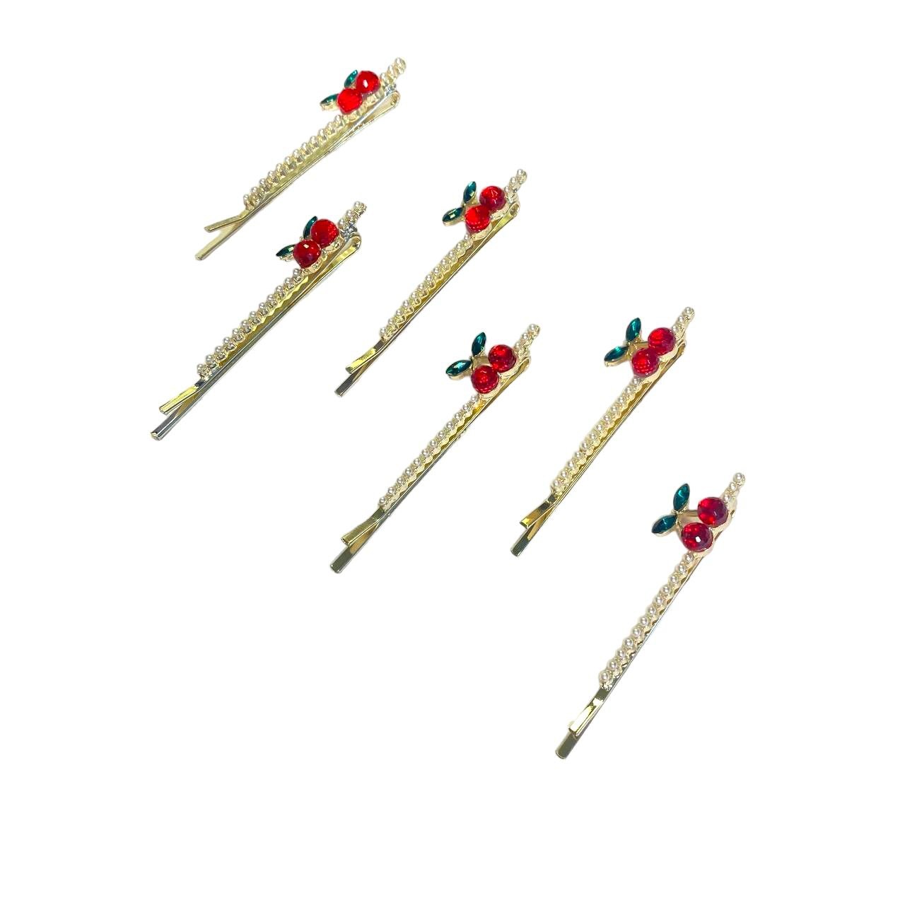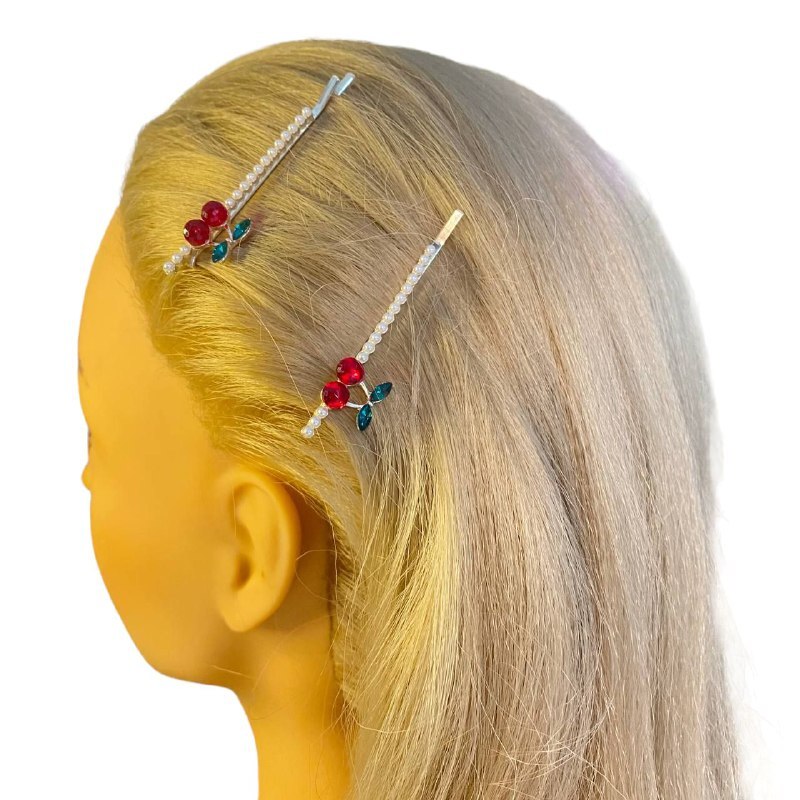 سنجاق انبری آلبالو فلزی با کریستال و مروارید