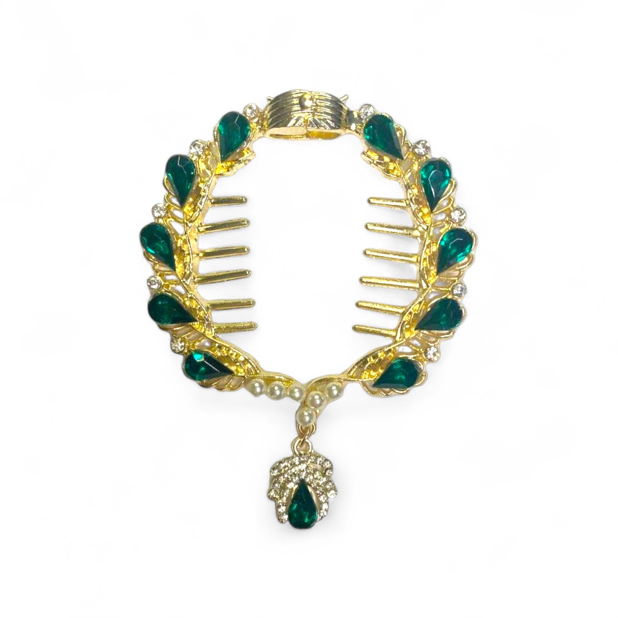 گیره گوجه ای مو درباری با کریستال سبز و آویز تک مروارید۲۲۰٬۰۰۰ تومان