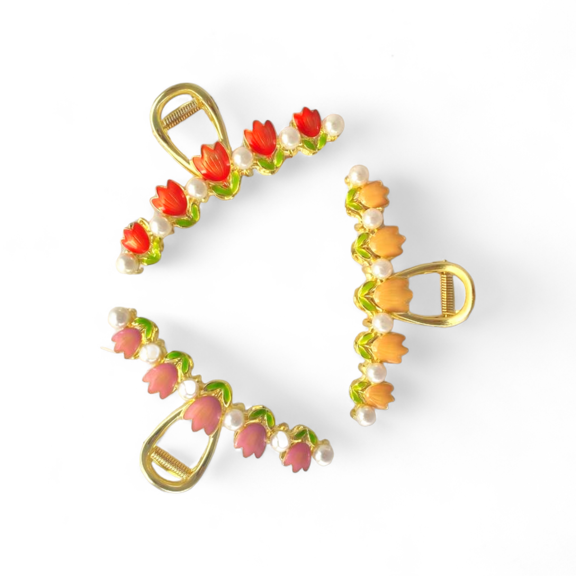 کلیپس فلزی مجلسی طرح گل لاله در سه رنگ۱۷۰٬۰۰۰ تومان